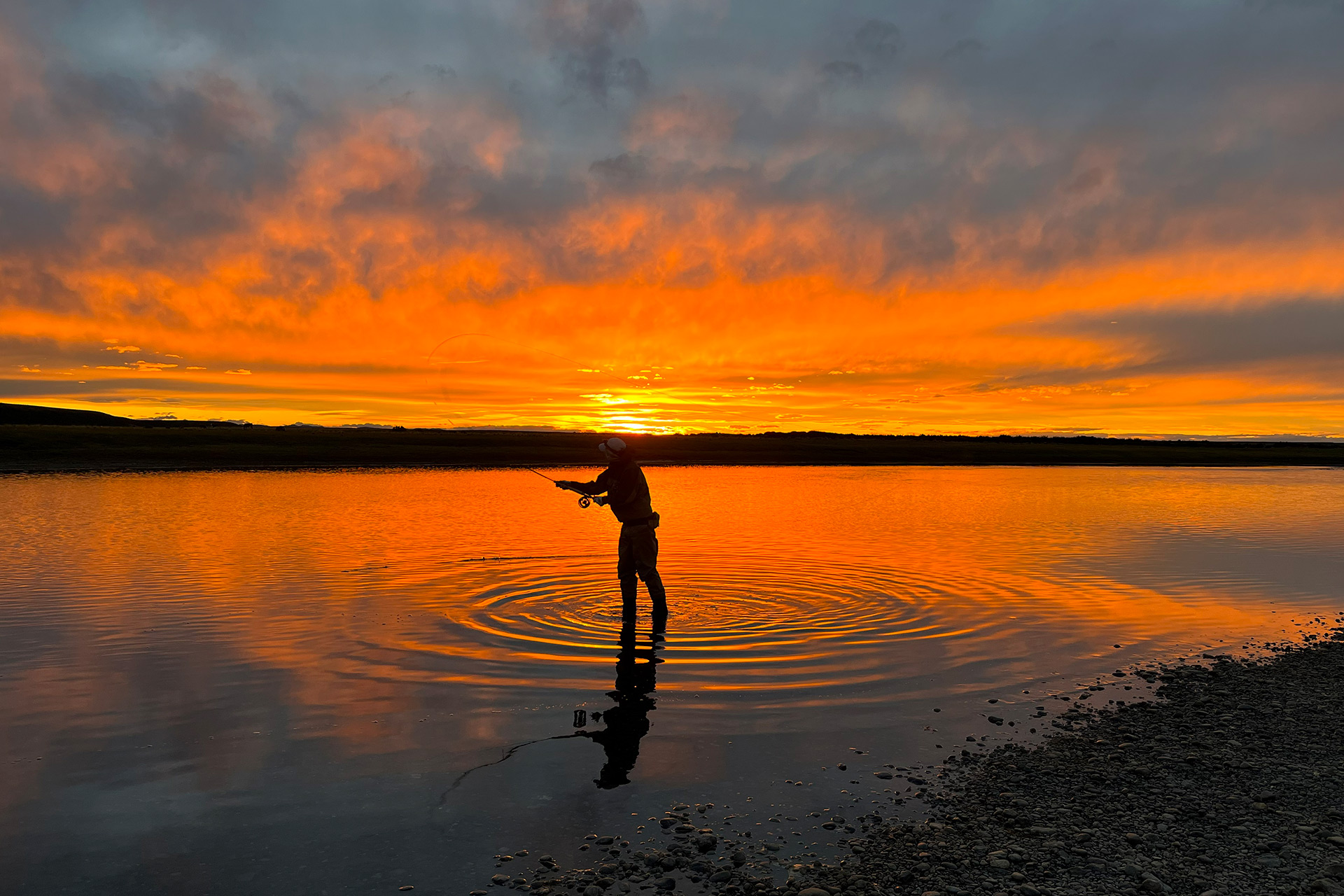 The wind carries whispers of adventure. The sky changes by the minute, painting colors that can’t be replicated. Even when you’re not casting, you’re living something extraordinary — watching flamingos cross the horizon, or a guanaco grazing near the riverbank.